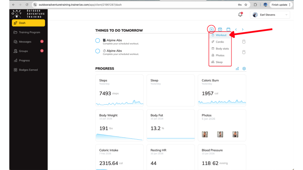 1-2. Click the ➕ Plus button in the top right, select Workout