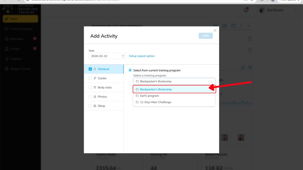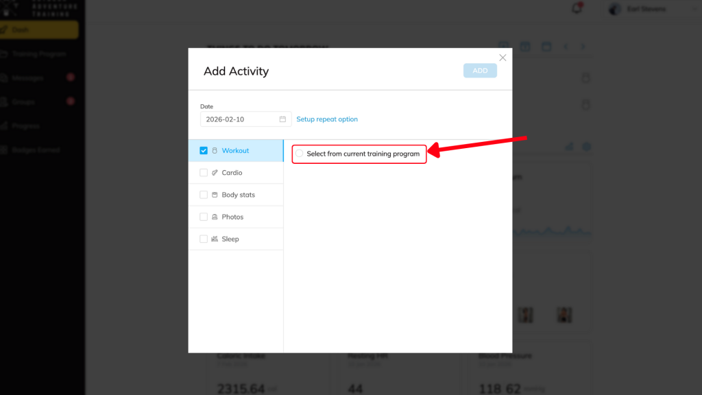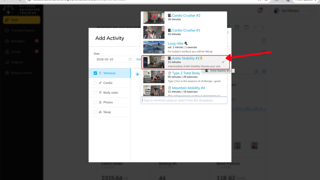 If the workout you want is not on your calendar yet, you’ll need to add it first.