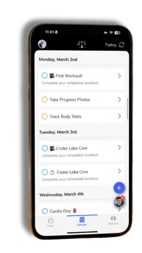 - Visit the Workouts tab in the app. You have access to your program’s full exercise library and can explore sessions immediately.